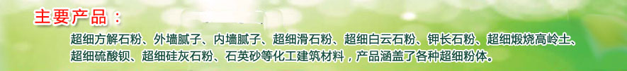 廣福建材集團(tuán)始建于1994年,是國(guó)內(nèi)較大規(guī)模的超細(xì)粉體加工企業(yè)。主要產(chǎn)品有超細(xì)方解石粉、外墻膩?zhàn)?、?nèi)墻膩?zhàn)?、超?xì)滑石粉、超細(xì)白云石粉、鉀... ...詳細(xì)>>